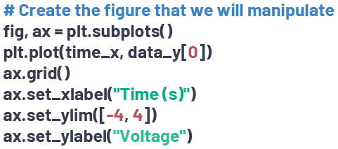 파형을 보기 쉽게 눈금선을 추가할 수 있다. 축 레이블과 y 한계를 추가해서 플롯에 대한 세부 사항을 추가할 수 있다.
