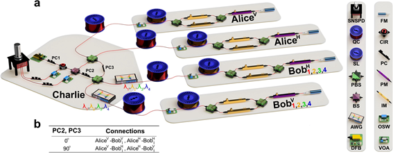 연구팀은 또한 편광, 시간, 파장 분할 기술을 적용하여 2:N 네트워크로 확장 가능한 새로운 TF QKD 네트워크 구조를 제안하고 실험적으로 검증했다. 이는 세계에서 두 번째로 TF QKD 네트워크 실험 검증에 성공한 사례이다. 최초의 연구사례는 링(Ring) 네트워크 구조인 반면 연구팀의 구조는 별(Star) 네트워크 구조다.