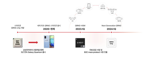 SKT와 IDQ는 2020년 개발한 QRNG 칩의 확장성과 보안성을 무기로 사물인터넷(IoT)과 도심항공모빌리티(UAM)·금융 등 다양한 영역의 국내 암호 개발 기업들과 협력하고 있다.