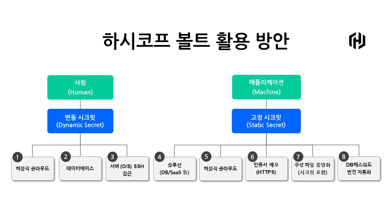 시크릿은 ‘비밀번호, 인증서, 토큰, SSH키, API키 등 보호된 리소스 또는 민감한 정보의 잠금을 해제하는 키로 작동하는 중요 정보’를 의미한다. 지난 10년간 20개의 기업이 약 10억 원 이상의 대규모 데이터 유출을 경험했으며 이들의 90%는 이미 볼트를 사용해 시크릿 관리를 하고 있다고 설명했다.