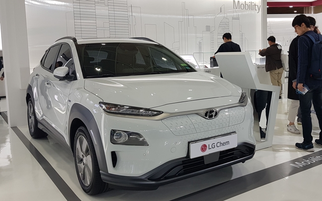 LG화학·삼성SDI, 양사의 배터리를 사용하는 실제 전기차 부스에 전시