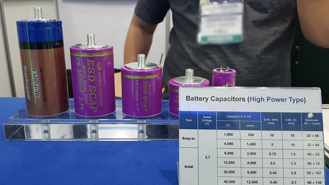 이번 전시회에는 배터리 업체 외에도 MLCC 중심의 수동부품 전문기업인 삼화콘덴서가 배터리 커패시터 등의 새로운 배터리 솔루션을 선보여 관람객들의 시선을 끌었다. 삼화콘덴서는 이번 전시회에서 EDLC(Electrical Double Layer Capacitor, 전기 이중층 커패시터), 하이브리드 커패시터(Hybrid Capacitor), 배터리 커패시터(Battery Capacitor) 등 신재생과 에너지 저장용 신규 제품을 전시했다.