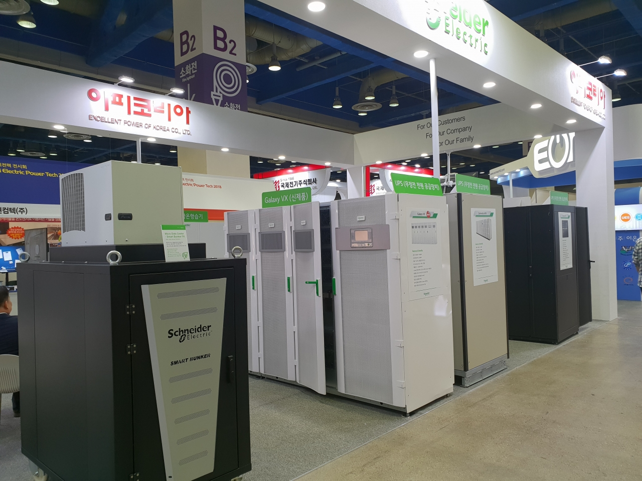 ▲UPS, PDU, Cooling 등의 상태를 원격으로 모니터링하고 문제 발생 시 데이터 관리자에게 알람을 보내는 에코스트럭처 IT 엑스퍼트 (Ecostruxure IT Expert) ▲에너지 효율 99%의 무정전 전원공급장치 ‘갤럭시 VX (Galaxy VX)’ ▲엣지 컴퓨터와 소규모 데이터 센터에 최적화된 UPS ‘갤럭시 VS (Galaxy VS)’ ▲DICM 쿨링 옵티마이즈 (DICM Cooling Optimize) ▲Unifair 항온항습기 등 총 9가지의 데모 장비와 다양한 적용사례가 전시된다.