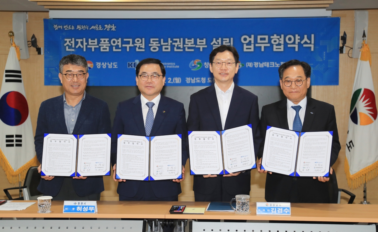 [테크월드=선연수 기자] 전자부품연구원(이하 KETI)이 오늘 2일 경상남도, 창원시, 경남테크노파크와 ‘KETI 동남권 본부 설립을 위한 업무협약’을 경남도청에서 체결했다.