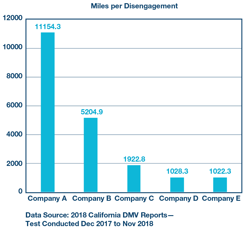 상황은 이렇지만, 목표는 확고하며 길은 정해져 있다. 자율주행차는 점점 현실로 다가오고 있으며, 안전성이 무엇보다 중요하게 여겨진다. 2018년 캘리포니아주 차량국(DMV) 비공식적 자율주행차 조사에 따르면, 주행거리(마일) 당 자율 모드 해제 건수가 줄어들고 있는 것으로 나타났다. 이는 시스템 성능이 점점 나아지고 있다는 표시이나, 더 빠른 개선 속도가 요구된다.