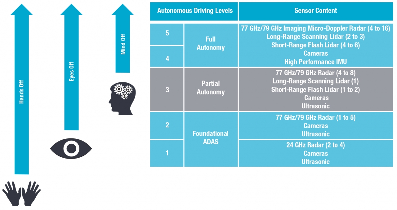 자율주행과 관련된 전체 에코시스템이 로봇택시나 장거리 트럭 운송 같은 새로운 애플리케이션용으로 완전 자율주행차를 구현하고 테스트하기 위해 적합한 모델을 찾고 있다. 이와 함께, 센서 기술의 발전 덕분에 ADAS가 진화하면서 점점 더 높은 수준의 자동화를 이룰 수 있게 됐다.