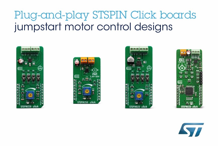 [테크월드=선연수 기자] ST마이크로일렉트로닉스(STMicroelectronics, 이하 ST)가 마이크로일렉트로니카(MikroElektronika)와 협업해 모터 드라이버 클릭보드(Click boards) 4종 ‘STSPIN220’, ‘STSPIN820’ , ‘STSPIN250’, ‘STSPIN233’을 개발했다.