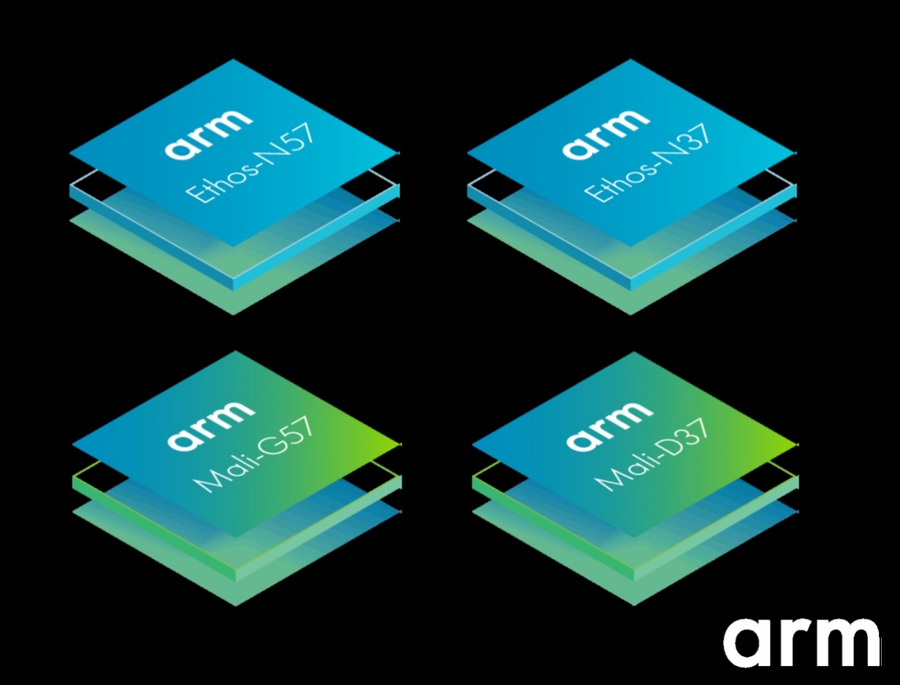 Arm은 머신러닝 프로세서인 Ethos-N57과 Ethos-N37 NPU, 그리고 Mali-G57 GPU, Mali-D37 DPU를 새롭게 발표했다. Ethos NPU 제품군에 추가된 Ethos-N57와 N37은 Arm의 NPU 적용 디바이스의 범위를 확장한다. 기존의 N77은 카메라, 프리미엄 스마트폰, AR/VR 분야에 적합했다면, N57은 메인스트림 스마트폰, 스마트홈 허브에, N37은 스마트 보안 카메라, 엔트리 스마트폰, 디지털 TV 등에 최적화된 제품이다. 이를 통해 기존 프리미엄 디바이스들에만 적용되던 머신러닝 기술을 메인스트림까지 확대해, 음성, 비전 관련 인공지능(AI) 기능을 어디서든 사용할 수 있도록 지원하는 게 Arm의 목적이다.