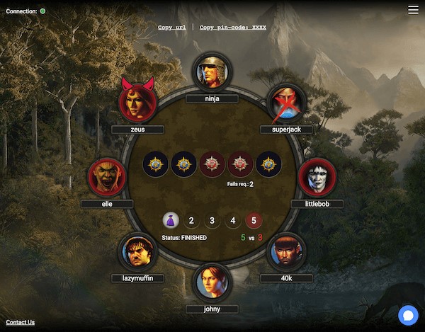 아발론은 랜덤으로 3명의 플레이어를 ‘저항(Resisitance)’ 팀에, 2명의 플레이어를 ‘스파이(Spy)’ 팀으로 나눈다. 스파이 역할을 맡은 2명은 팀원 전체의 역할을 알고 있다. 게임은 여러번의 미션을 수행하는 방식으로 진행되며, 5명이 함께 실행하는 게 아닌 2명 또는 3명이서 진행하게 된다. 플레이어 들은 먼저 미션을 진행할지 말지 결정한 뒤, 참여하는 플레이어들은 ‘성공’과 ‘실패’ 중 하나를 다른 플레이어 모르게 선택하게 된다. 이때 저항팀은 ‘성공’만 선택할 수 있다. 한 명이라도 ‘실패’를 선택한 경우 미션은 실패하게 된다. 미션을 3번 성공하면 저항 팀의 승리로, 미션 실패를 3번 해내면 스파이 팀이 승리하게 되는 방식이다.