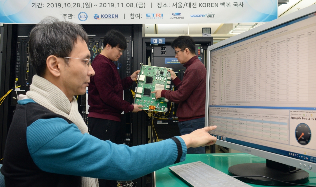 ETRI는 한국정보화진흥원(NIA)과 함께 지난 10월 말부터 2주 동안 대전-서울 간 왕복 430km에서 광전송 시스템을 연결하는 노드 간 기가(Gbps)급 데이터 전송 시연에 성공했다.