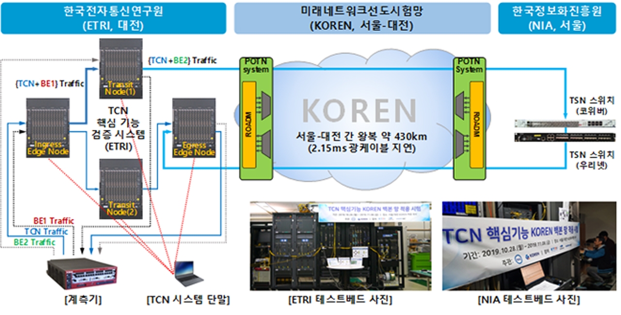 한국전자통신연구원(ETRI)은 ‘시간확정형 네트워킹(DetNet) 핵심기술’을 미래 네트워크 선도시험망(KOREN)에 연동하는 시험에 성공했다고 12월 10일 밝혔다.