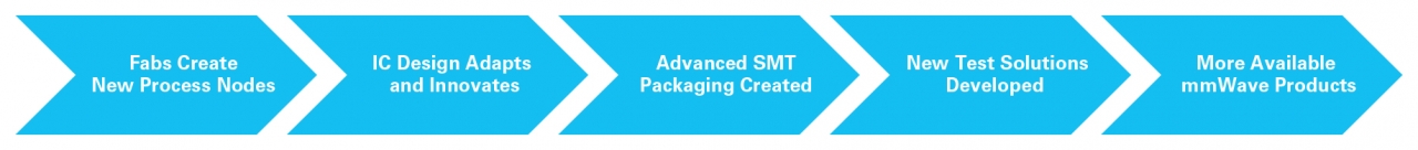 새로운 공정 기술이 등장할 때마다 IC 설계도 같이 발전한다. IC 설계자들은 하나의 공정 노드에 새로운 기능을 통합해 이전보다 우수한 성능을 끌어낼 수 있으며, 이로 인해 집적도가 높고 편리하게 설계할 수 있는 칩들이 등장하고 있다. 밀리미터파 주파수로의 확장을 통해 얻는 또 다른 이점은 저렴한 패키징을 활용할 수 있으며, 더 손쉽게 어셈블리할 수 있다는 것이다.
