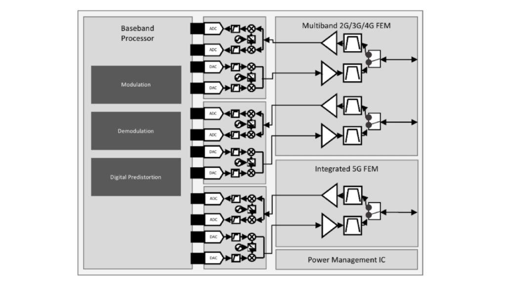 현재 RF 설계에서 전력 증폭기(PA, Power Amplifier)의 효율성은 핵심 수치이며, 배터리로 동작하는 디바이스에서 매우 중요하다. 송신기 전력 증폭기 단에서 전력 효율성과 선형증폭 성능을 높이기 위해, 포락선 추적(Envelope tracking)과 디지털 전치 보상 기법이 사용된다.