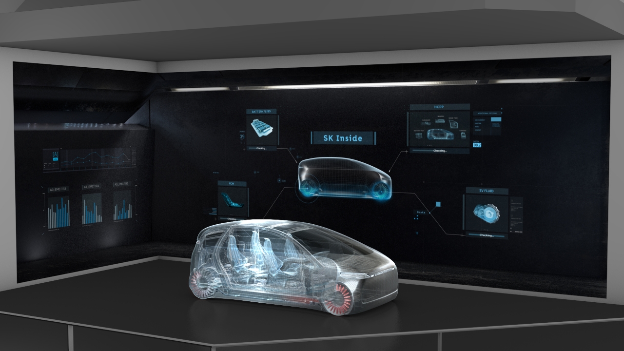 SK이노베이션은 이번 CES 2020에서 움직이는 모형자동차와 대형 스크린의 영상을 최첨단 방식으로 조합해 미래 전기차의 비젼을 제시한다. 이 전시를 통해 미래 전기차의 발전 방향을 제시하면서 그 발전을 가능하게 하는 SK이노베이션의 최첨단 기술력을 ‘SK Inside’ 모델로 보여줄 계획이다.
