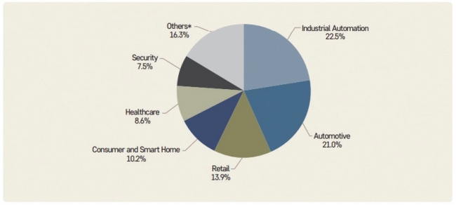 프로스트앤설리번이 예측한 산업별 시장규모에서 산업자동화/스마트팩토리 분야는 2017년 임베디드 시스템 시장 매출의 22.5%를 차지하는 가장 큰 분야이다. 자동차/운송 분야는 2017년 임베디드 시스템 시장 매출의 21.0%를 차지했으며, 소매업 분야는 13.9%의 시장 점유율을 기록했다.