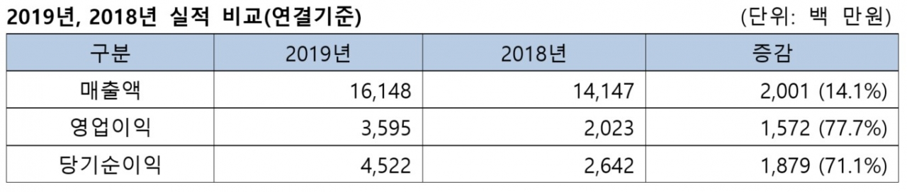 칩스앤미디어에 따르면, 연결재무제표 기준으로 2019년의 매출은 161억 원으로 전년 141억 원 대비 14.1% 증가했다. 영업이익은 35억 9500만 원으로 전년 20억 2300만 원 대비 77.7%, 당기순이익은 45억 2200만 원으로 전년 26억 4200억 원 대비 71.1% 증가했다.