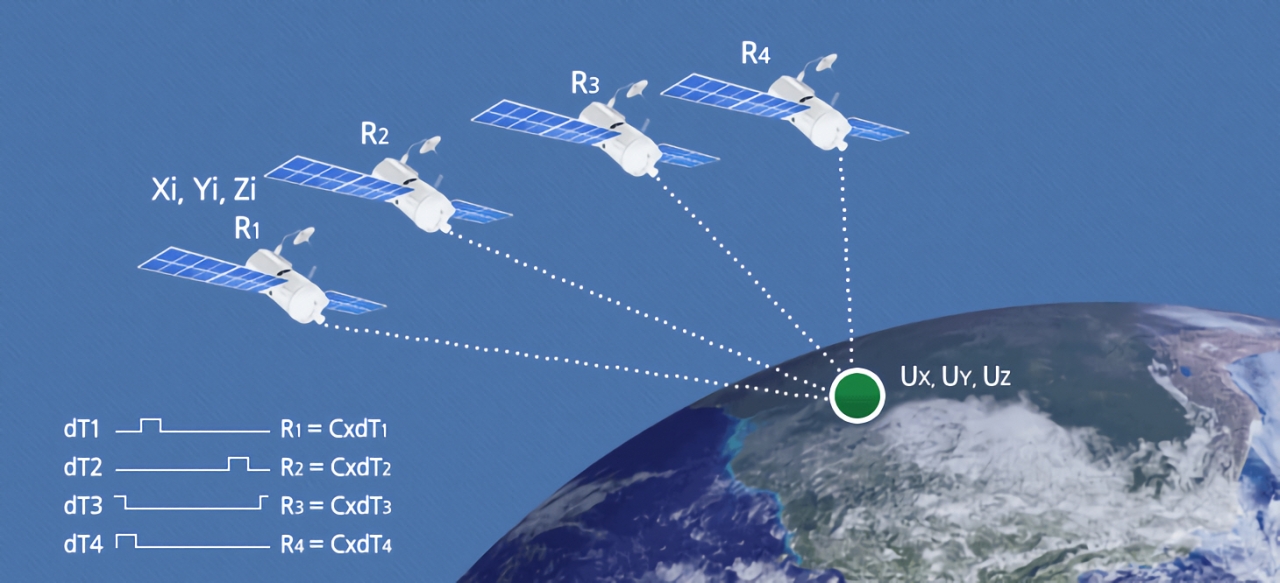 GPS는 기본적으로 한 점의 좌표와 거리를 삼각형의 성질을 이용해 알아내는 삼각측량의 원리를 기반으로 한다. 최소 3개 이상의 GPS 위성으로부터 수신된 신호가 서로 교차하는 지점을 수신 단말기의 위치로 추정한다. 여기에 하나의 위성이 추가되면 시간 오차를 보정할 수 있고, 동원되는 위성의 수가 늘어날수록 측위의 정확성과 얻을 수 있는 데이터의 종류가 다양해진다.