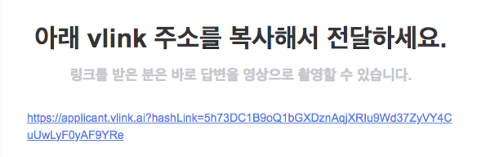 입력한 이메일에 접속하면 위 이미지와 같이 vlink 이름으로 질문지에 접속할 수 있는 URL이 도착해 있다. 인사담당자는 이 주소를 면접자에게 전달하면 끝이다. 이렇게 한번 만들어진 폼은 주소만 잃어버리지 않으면 계속 활용할 수 있다.
