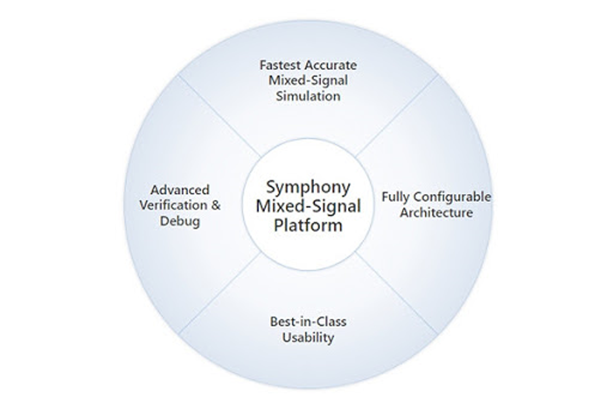 아날로그 패스트스파이스 솔루션을 기반으로 하는 심포니 믹스드-시그널 플랫폼은 업계 표준의 HDL 시뮬레이터로 빠르고 정확한 혼성신호 검증을 제공하며, 직관적인 사용 모델, 강력한 디버깅 기능과 구성 지원을 통해 복잡한 나노미터 수준의 혼성신호 IC를 검증한다.