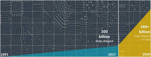 [테크월드=선연수 기자] Arm이 2019년 4분기 파트너들의 Arm에 기반한 칩 출하량이 64억 개를 넘어섰다고 발표했다.