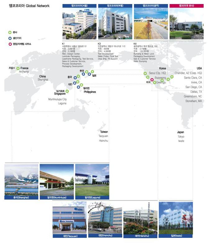 한편, 광주에 본사를 둔 앰코코리아의 전신은 1968년 대한민국 최초로 반도체 산업을 시작한 아남산업이다. 현재 모기업인 앰코테크놀로지는 미국 애리조나주에 본사를 두고 있으며, 전 세계 7개국 20개 사업장에서 3만 2000여 명의 임직원이 근무 중이다.