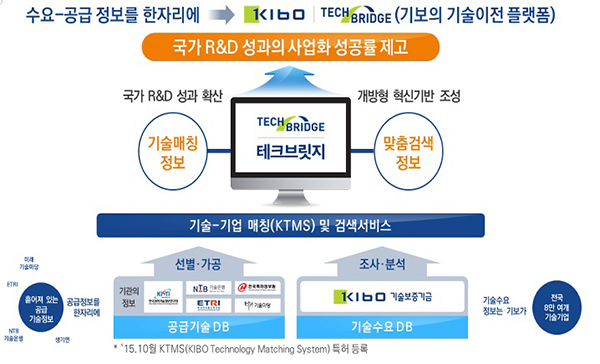 이 사업은 작년 8월 국무회의에서 예비타당성 조사가 면제된 사업으로, 2027년까지 총사업비 2525억 원(정부 1912억 원, 민간 613억 원)으로 총 240개 과제를 지원한다. 올해는 130억 원으로 50개(상반기 30개, 하반기 20개)의 과제를 발굴할 계획이다. 테크브릿지란 기술보증기금에서 운영 중인 온라인 기술유통 플랫폼으로, 대학과 연구소가 보유한 기술(약 38만 건)을 기보 전국 영업망(67개)를 활용해 수요 기술을 매칭해주는 방식이다.