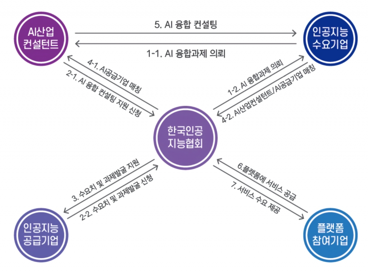 큰 틀에서 AI 기술기업에는 수요처 발굴을 통한 기술·데이터 확보와 수익 창출을 돕고, 전통 산업에는 이들과의 적극적인 매칭을 주선해 AI·데이터 기반 기업으로의 전환을 가속시키는 것이 사업의 주된 골자다. 궁극적으론 전체 AI 생태계 순환과 성장을 촉진함으로써 전 국민이 AI를 보다 쉽게 활용하는 인공지능 대중화 시대를 도모하고자 한다.