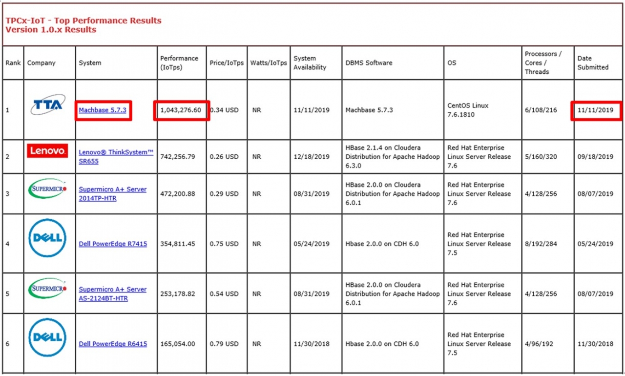 시계열 DBMS ‘마크베이스’는 2019년 11월 글로벌 공인 인증기관인 TPC가 실시한 TPCx-IoT 분야 테스트에서 뛰어난 성능으로 글로벌 기업들을 제치고 1위에 오르며 국제 표준으로 등재된 바 있다.