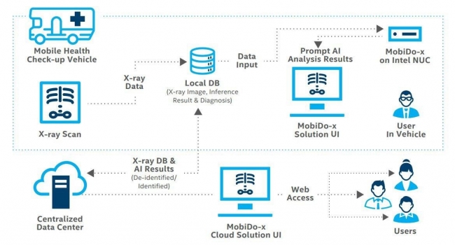 특히, 이번 코로나19 확산으로 주목받은 제이엘케이인스펙션의 흉부 X-Ray 분석 솔루션은 인텔의 미니PC에 최적화돼 실시간 X-Ray 현장 분석과 모바일 운영 기술로 소개됐다. 또한, 각종 의료정보가 클라우드 공간에서 통합돼 지속적인 학습 관리가 가능하고, 실시간으로 정보 사용∙확인이 가능한 융합 인공지능 의료 시스템도 소개됐다.