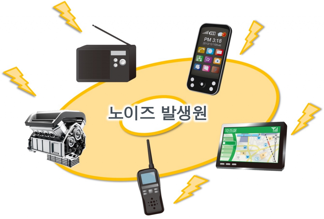 자동차에는 다양한 노이즈원이 있다[그림 1]. 배터리와 엔진에서 발생하는 노이즈, 프린트 기판의 주변 회로, 모터, 인버터, 스위칭 전원 등도 노이즈원이 된다. 카 내비게이션이나 스마트폰, 오디오 기기 등의 통신기기는 전파를 끊임없이 발생시키므로 이 역시 노이즈원이 된다. 이런 노이즈가 신호선이나 전원 라인에 유입되면, 경우에 따라서는 시스템의 오동작을 초래하기도 한다. 자동차의 기본 성능인 ‘주행’, ‘회전’, ‘정지’에 관련된 부분에서 특히 오동작이 발생하면 안 되므로, 설계자는 모든 가능성을 고려해 노이즈 대책을 실시해야 한다.