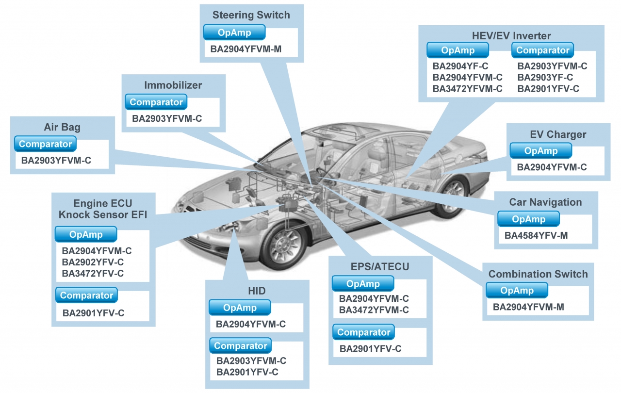 로옴은 이러한 과제에 대응해 높은 노이즈 내량을 실현한 제품 시리즈 ‘EMARMOUR(이엠아머)’를 라인업했다. 먼저, OP Amp를 2017년에 개발해 오토모티브 시장에서 높은 평가를 받았다. 다음으로, 시장의 강력한 요구에 대응하기 위해 개발한 콤퍼레이터 ‘BA8290xYxxx-C 시리즈’를 개발했으며, 이 두 제품을 소개하고자 한다.