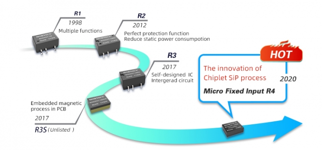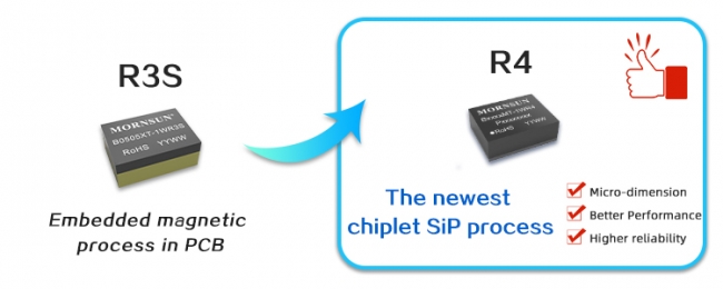 컨버터 제공업체 몬선(Mornsun)이 최신 칩렛 SiP(System in Package) DC-DC 컨버터를 출시했다. 이는 고정 인풋 R4 시리즈로, 마이크로 단위로 크기를 대폭 축소했다.