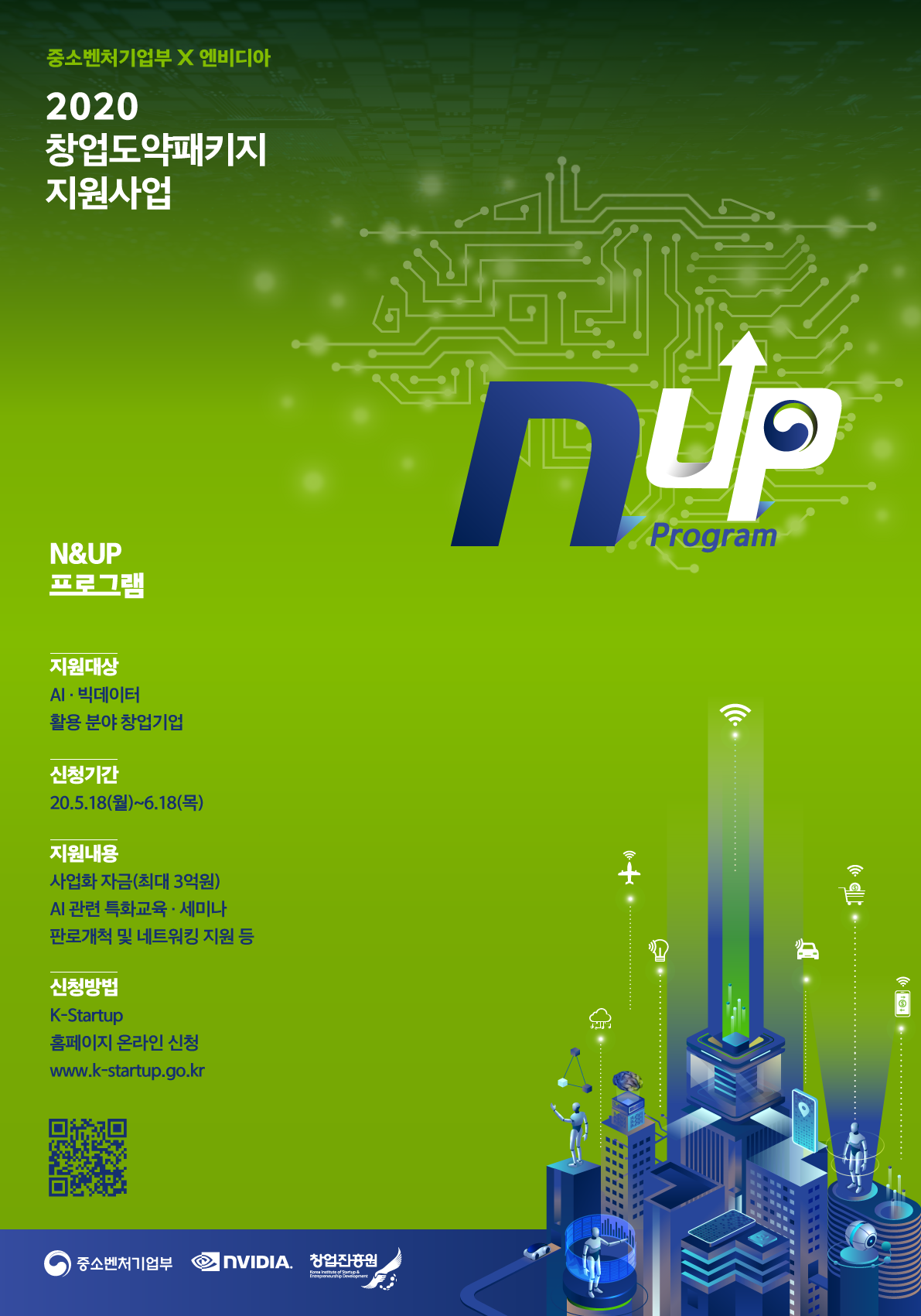5월 18일 엔비디아와 중기부, 창진원은 AI·빅데이터 분야의 첨단 신산업군인 사물지능(AIoT) 창업기업의 기술개발과 상용화를 지원하는 ‘N&UP 프로그램’을 출범하고, 지원 대상 기업 모집을 시작했다.