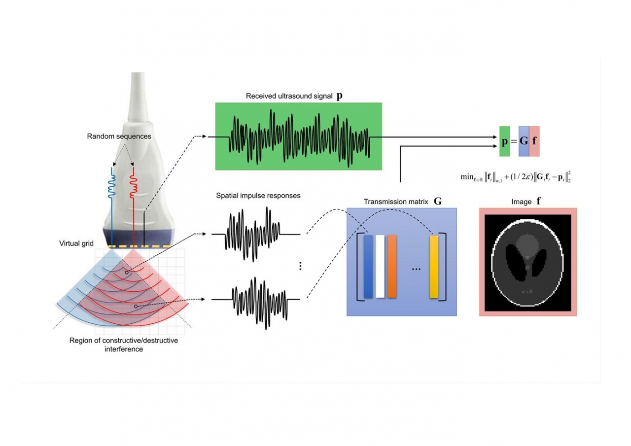 이는 다양한 랜덤 패턴으로 여러 번에 걸쳐 방사된 초음파 파동이 이를 반사시키는 물질을 만났을 때, 다양한 무작위 패턴을 생성하게 되는 특성을 이용한 것이다. 생성된 무작위 패턴은 미리 측정한 임펄스 응답과 수학적 최적화를 이용한 복구방법을 활용해 높은 공간 분해능의 이미지 영상으로 복구할 수 있다.