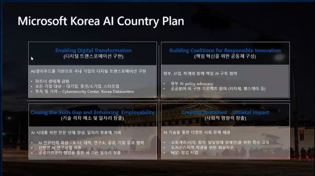 한편, 한국 마이크로소프트는 이번 디브리핑에서 한국형 AI 활성화를 위한 포괄적 지원 플랜을 발표했다. 이를 통해 자사의 기술력과 포트폴리오를 중심으로 AI 기술을 지원하고, 한국 정부기관, 사회 단체 등과 함께 전방위 협업을 통한 종합적 발전을 위한 토대를 마련하고자 지속적으로 노력할 예정이다.