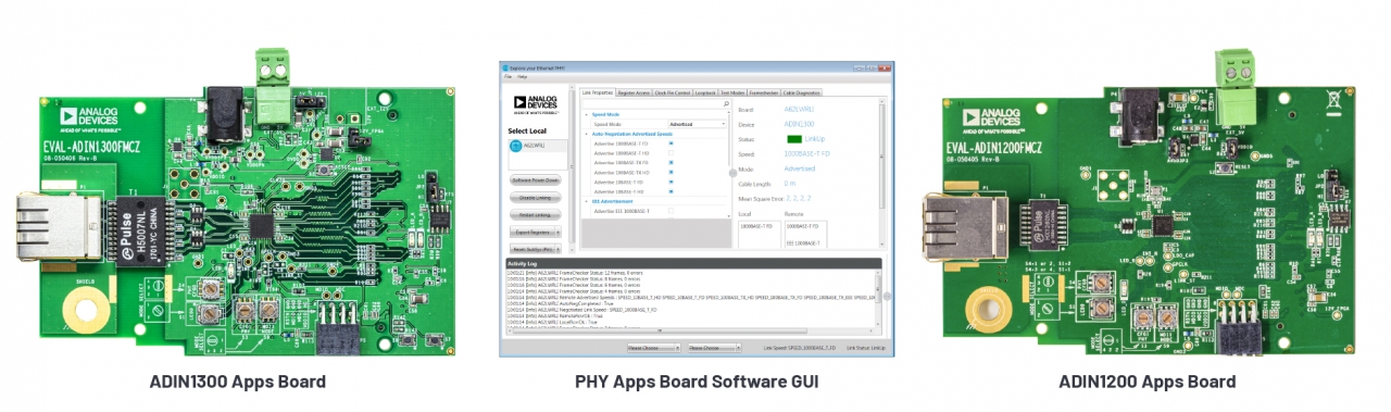 ADIN1300은 저전력, 저지연, 작은 크기의 패키지, 10Mbps/100Mbps/1000Mbps 산업용 이더넷 PHY로 EMC와 ESD 견고성에 대해 광범위하게 시험된 제품이며, 최대 105℃의 넓은 주변 온도 동작을 지원한다. ADIN1200 저전력, 10Mbps/100Mbps, 견고한 산업용 이더넷 PHY는 역시 EMC와 ESD 견고성에 대해 광범위하게 시험됐으며, 최대 105℃의 넓은 동작 온도 범위를 지원한다[그림 5].