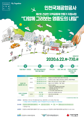 [테크월드=김정진 기자] 인천국제공항공사는 인천광역시사회복지협의회와 함께 진행하는 '제2회 건강한 지역공동체 만들기 지원 사업'의 참가자를 오는 22일부터 7월 10일까지 모집한다고 밝혔다.