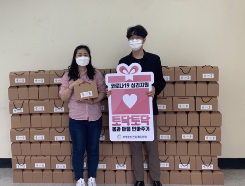 심리지원 키트는 정서적 취약계층에 대한 관리 강화 차원에서 마련된 것으로 손 소독제와 소독용 물티슈 등 코로나19 예방을 위한 개인위생용품을 비롯해 스트레스 완화를 위한 미니화분 세트, 힐링 컬러링 키트, 마사지 볼, 비타민 등이 포함됐다.