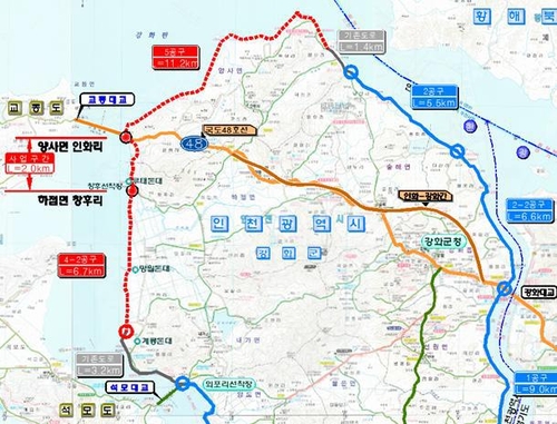 시에서 추진 중이던 강화해안순환도로 중 4공구는 황청리(내가면)부터 인화리(양사면)까지로, 이 중 창후리(하점면)부터 인화리(양사면)까지가 4-1공구에 해당한다.