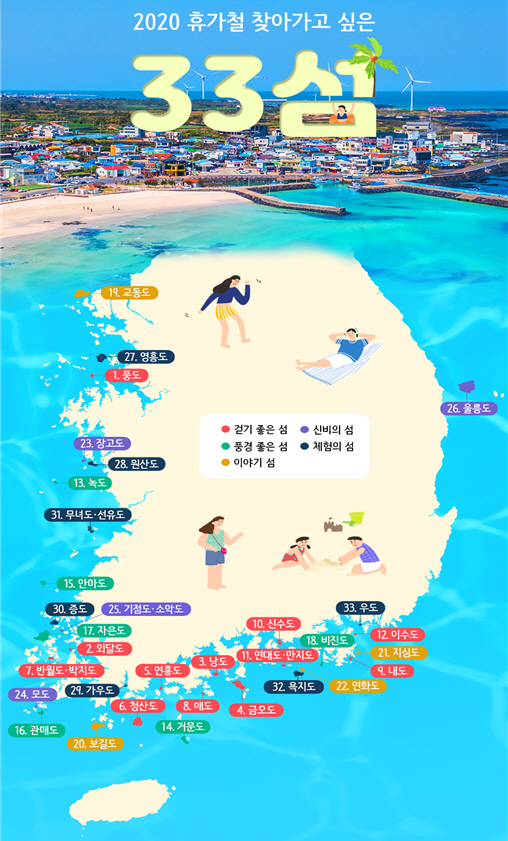 행정안전부(이하 행안부)는 28일 ‘2020년 휴가철 찾아가고 싶은 33섬’을 선정, 발표했다.