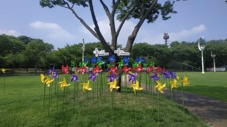코오롱야외음악당은 전면 개방에 따른 코로나19 확산 방지 조치로 2만860㎡의 잔디광장에 10m 간격의 바람개비 표지를 설치하고 반경 4m 내 1개의 개인 돗자리를 펼 수 있게 했다.