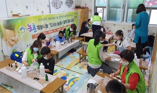 이번 농촌 재능 나눔은 농림축산식품부와 한국농어촌공사가 주관하고 사랑손힐링센터가 시행에 나섰다. 3년째 이어지고 있는 농촌 재능 나눔은 코로나19의 여파로 의료봉사활동이 아닌 아로마 요법 체험활동으로 진행됐다.