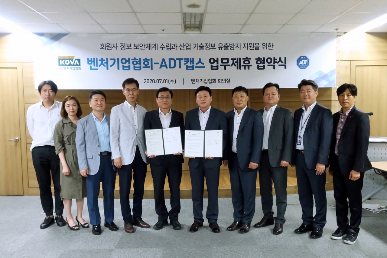 벤처기업협회(이하 협회)는 7일 ADT캡스와 회원사 정보보안체계 수립과 산업기술 유출방지 지원을 위한 업무협약을 지난 1일 체결했다고 밝혔다.