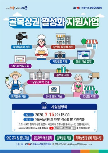 한편, 의왕시 소상공인연합회에서는 오는 15일 오후 3시에 계원예술대학교 파라다이스홀에서 골목상권 활성화 사업설명회를 개최할 예정이며, 참석하지 못하는 분들을 위해 의왕시 소상공인연합회 유튜브로도 실시간 생중계할 계획이다.