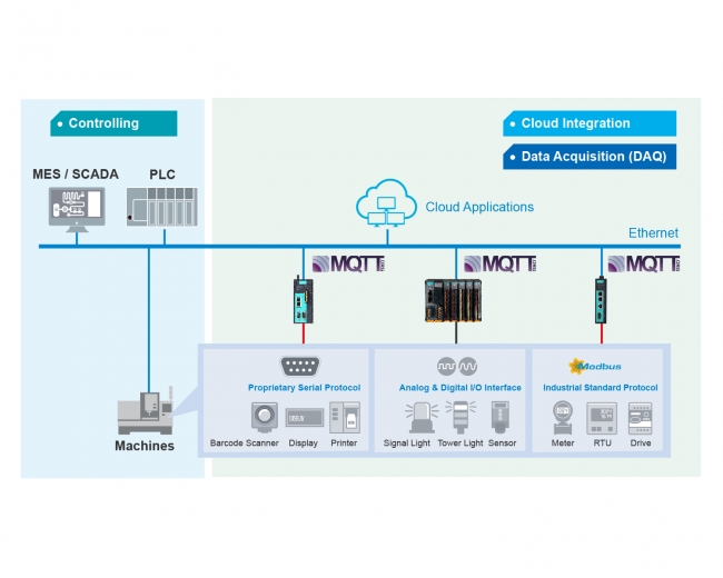 OT와 IT 통합을 위해서는 먼저 OT 데이터 수집을 위한 프로토콜 변환이 가장 중요하다. MOXA는 M2M(Machine to Machine) 통신을 위한 필드버스, 사용자 프로토콜·오픈 프로토콜, IT·클라우드 애플리케이션을 위한 레스트풀(RESTful) API, MQTT와 같은 다양한 통신 프로토콜을 지원하는 솔루션을 개발해 왔다.